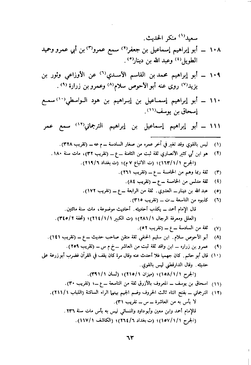 108- أبو إبراهيم إسماعيل بن جعفر2 سمع عمرو3 بن أبي عمرو وحميد الطويل4 وعبد الله بن دينار5.