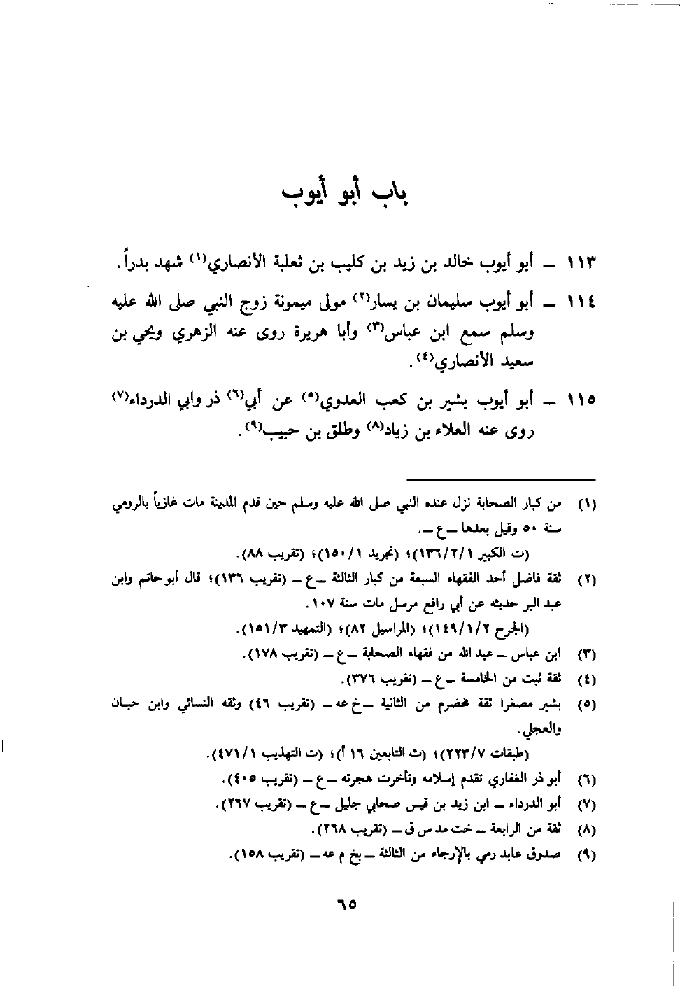114- أبو أيوب سليمان بن يسار2 مولى ميمونة زوج النبي صلى الله عليه وسلم سمع ابن عباس3 وأبا هريرة روى عنه الزهري ويحيى ابن سعيد الأنصاري4.