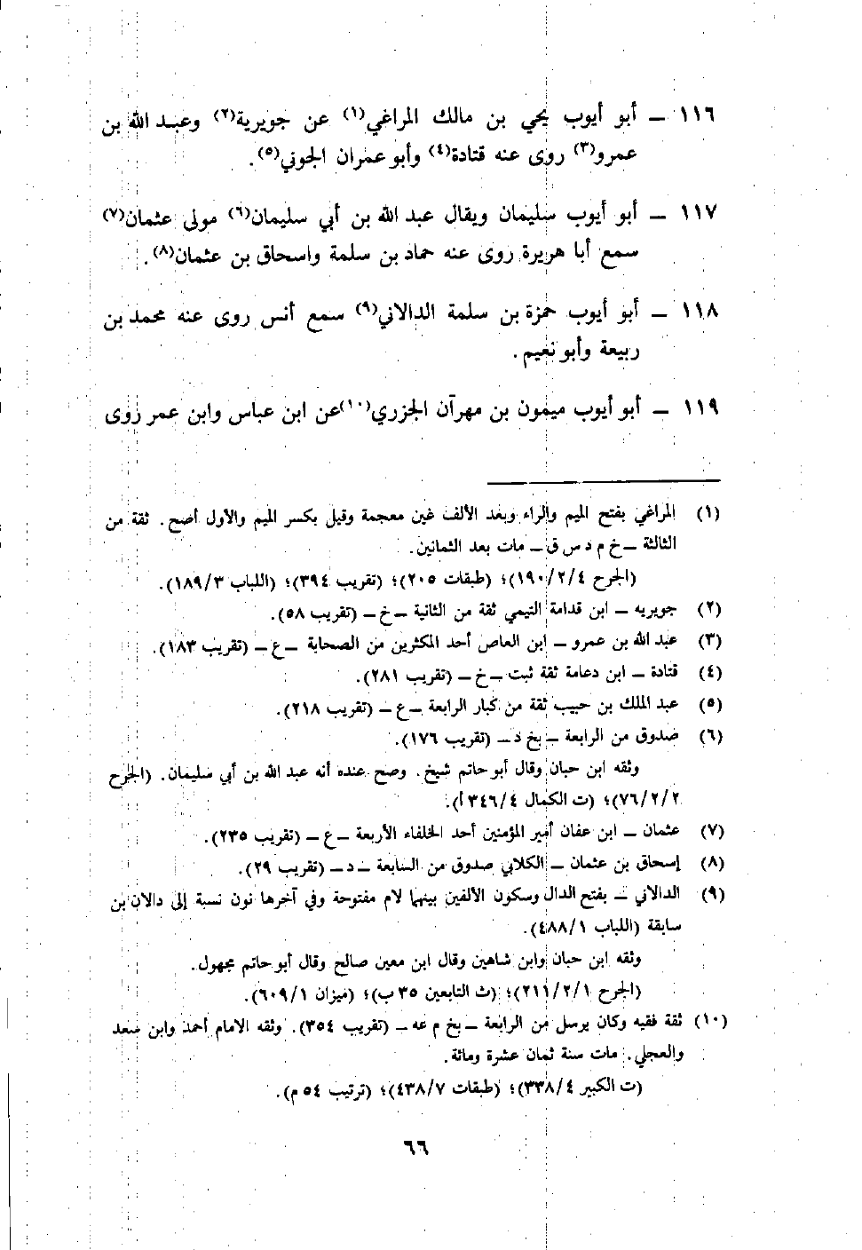 116- أبو أيوب يحي بن مالك المراغي1 عن جويرية2 وعبد الله بن عمرو3 روى عنه قتادة4 وأبو عمران الجوني5.