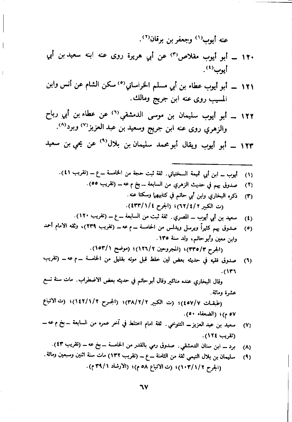 122- أبو أيوب سليمان بن موسى الدمشقي6 عن عطاء بن أبي رباح والزهري روى عنه ابن جريج وسعيد بن عبد العزيز7 وبرد8.