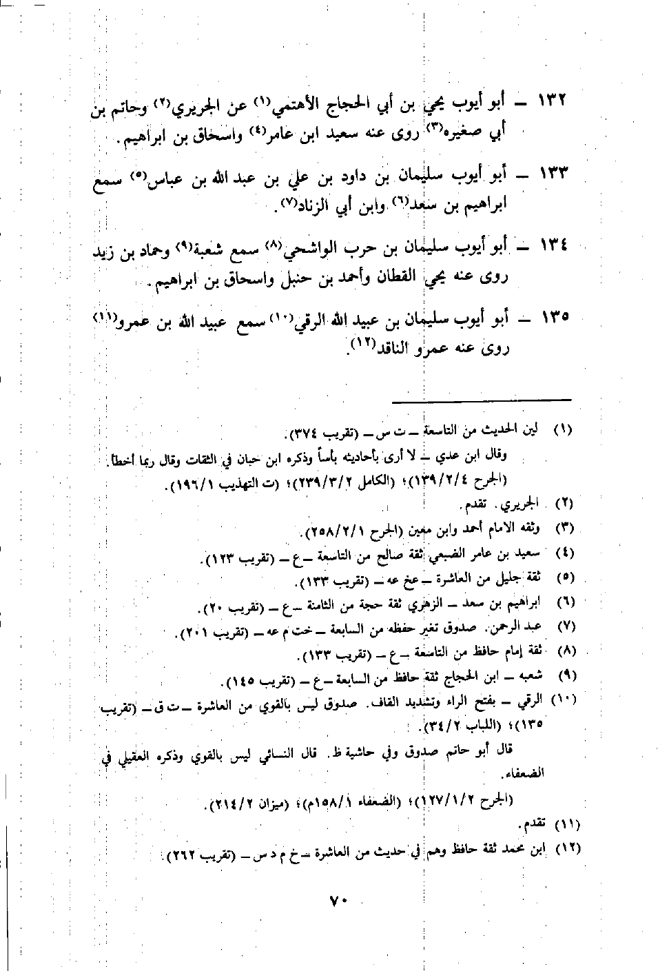 134- أبو أيوب سليمان بن حرب الواشحي8 سمع شعبة9 وحماد بن زيد روى عنه يحيى القطان وأحمد بن حنبل وإسحاق بن إبراهيم.
