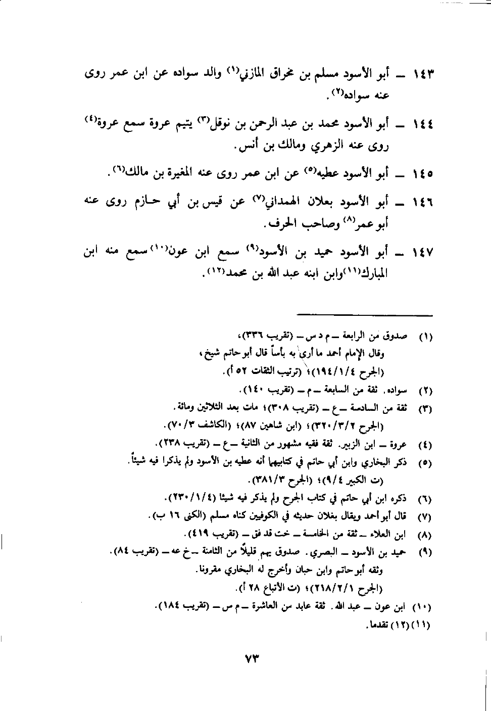 147- أبو الأسود حميد بن الأسود9 سمع ابن عون10 سمع منه ابن المبارك11 وابن ابنه عبد الله بن محمد12.