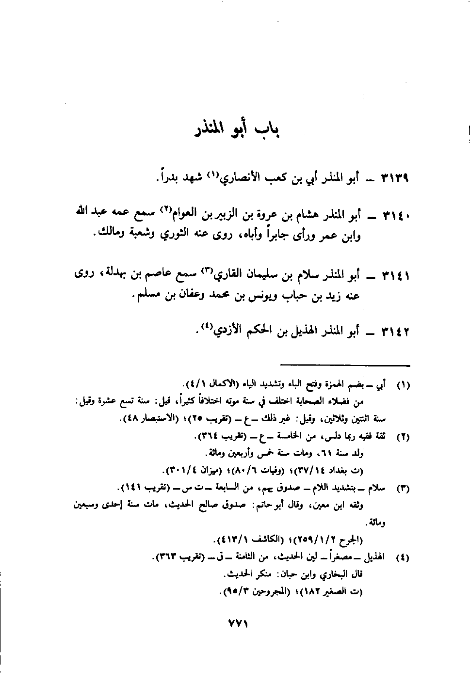 3140- أبو المنذر هشام بن عروة بن الزبير بن العوام2 سمع عمه عبد الله وابن عمر ورأى جابرا وأباه، روى عنه الثوري وشعبة ومالك.