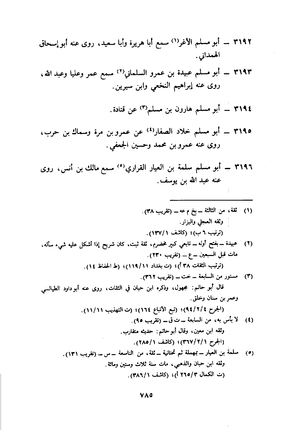 3193- أبو مسلم عبيدة بن عمرو السلماني2 سمع عمر وعليا وعبد الله، روى عنه إبراهيم النخعي وابن سيرين.