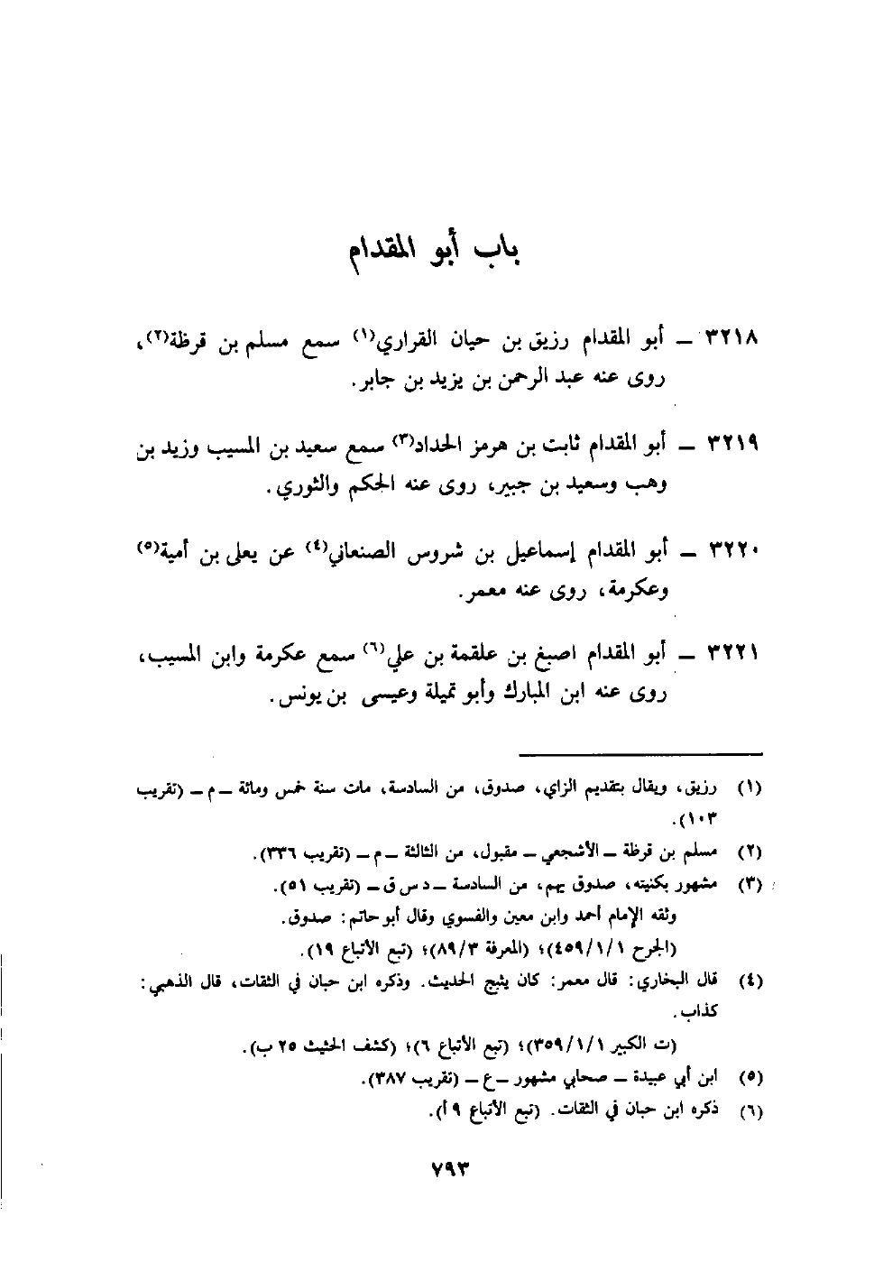 3219- أبو المقدام ثابت بن هرمز الحداد3 سمع سعيد بن المسيب وزيد بن وهب وسعيد بن جبير، روى عنه الحكم والثوري.