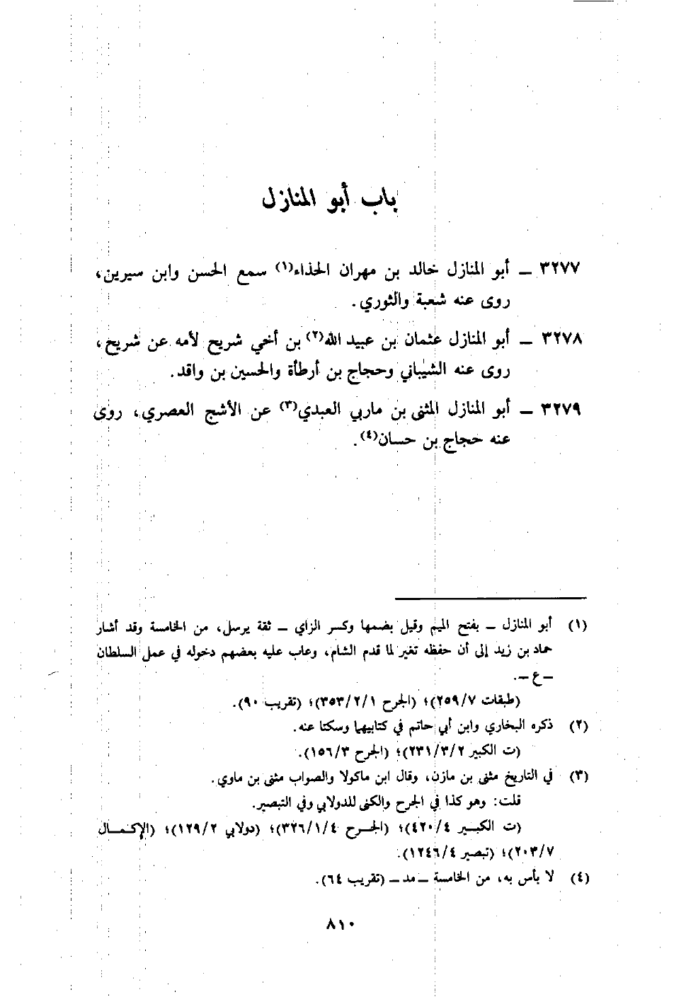 3277- أبو المنازل خالد بن مهران الحذاء1 سمع الحسن وابن سيرين، روى عنه شعبة والثوري.