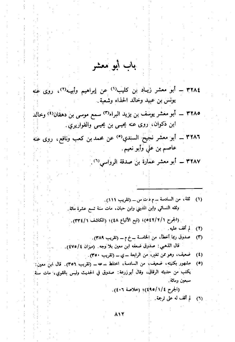 3286- أبو معشر نجيح السندي5 عن محمد بن كعب ونافع، روى عنه عاصم بن علي وأبو نعيم.
