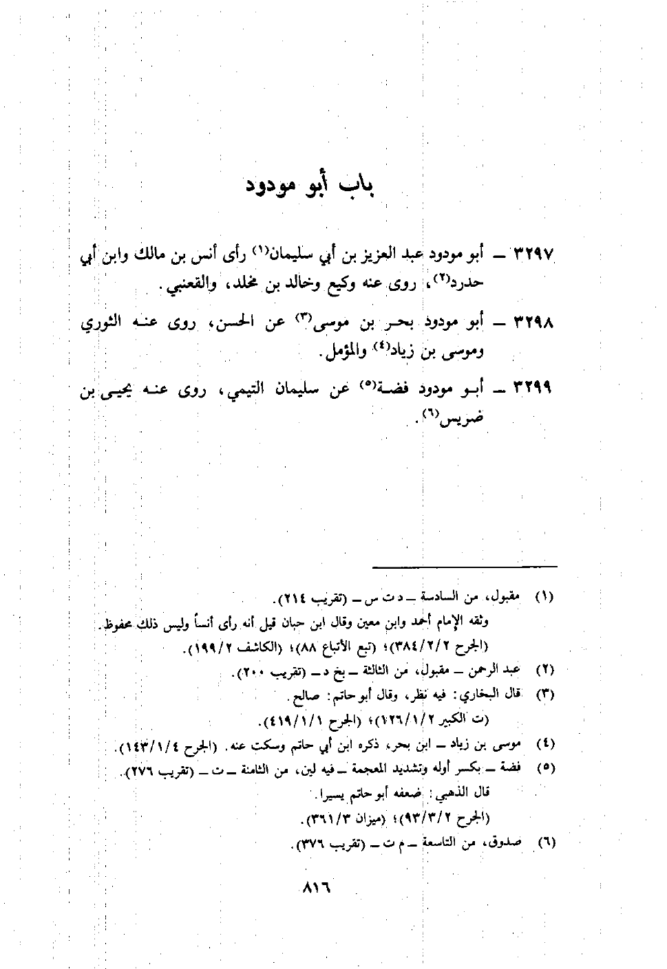 3299- أبو مودود فضة5 عن سليمان التيمي، روى عنه يحيى بن ضريس6.
