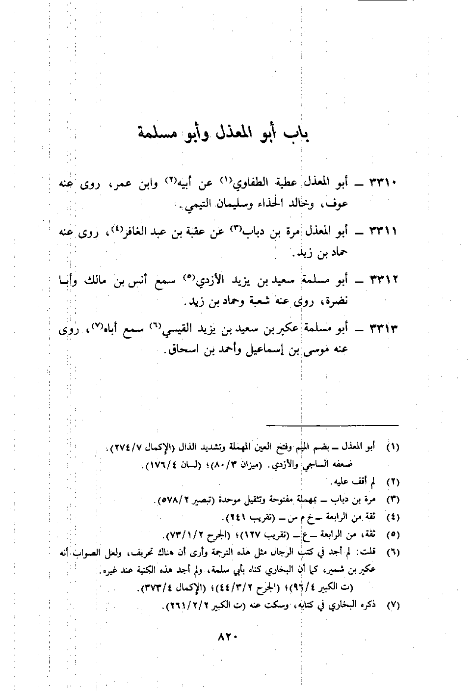 3311- أبو المعذل مرة بن دباب3 عن عقبة بن عبد الغافر4، روى عنه حماد بن زيد.