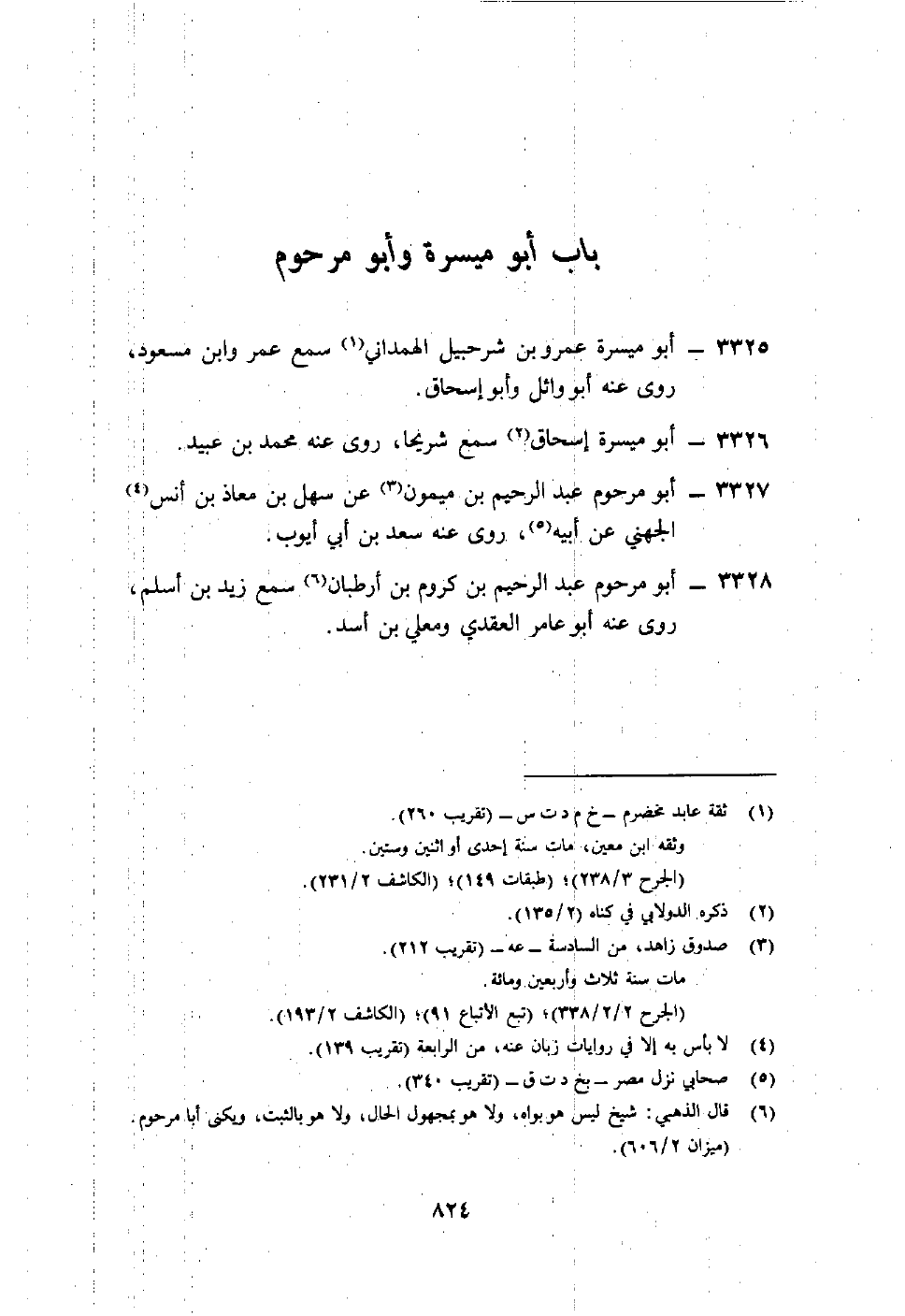 3325- أبو ميسرة عمرو بن شرحبيل الهمداني1 سمع عمر وابن مسعود، روى عنه أبو وائل وابو إسحاق.