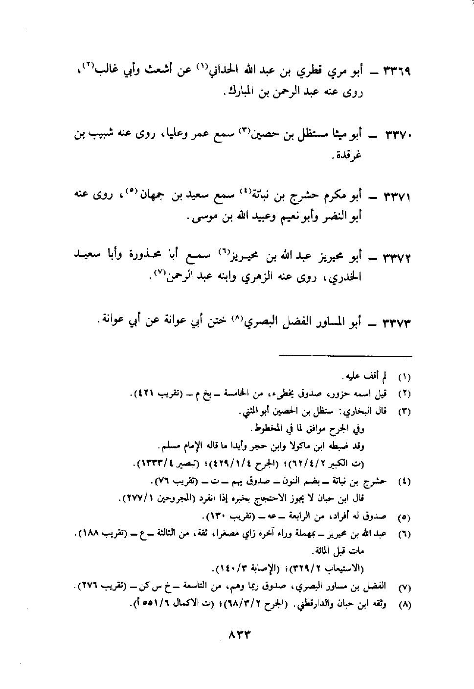 3371- أبو مكرم حشرج بن نباتة4 سمع سعيد بن جمهان5، روى عنه أبو النضر وأبو نعيم وعبيد الله بن موسى