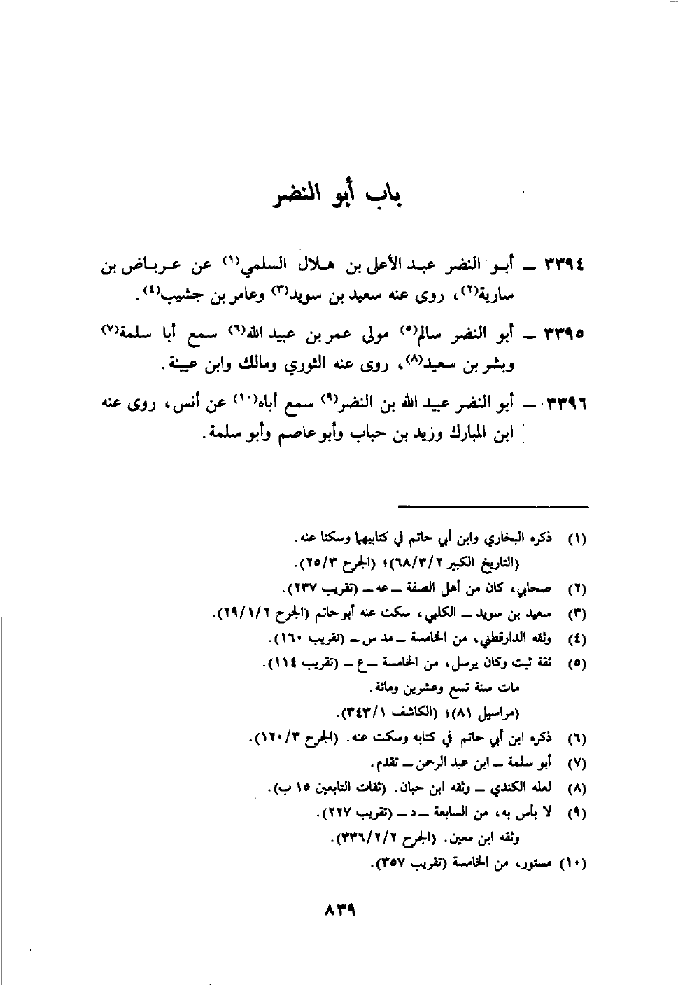 3395- أبو النضر سالم5 مولى عمر بن عبيد الله6 سمع أبا سلمة7 وبشر بن سعيد8، روى عنه الثوري ومالك وابن عيينة.