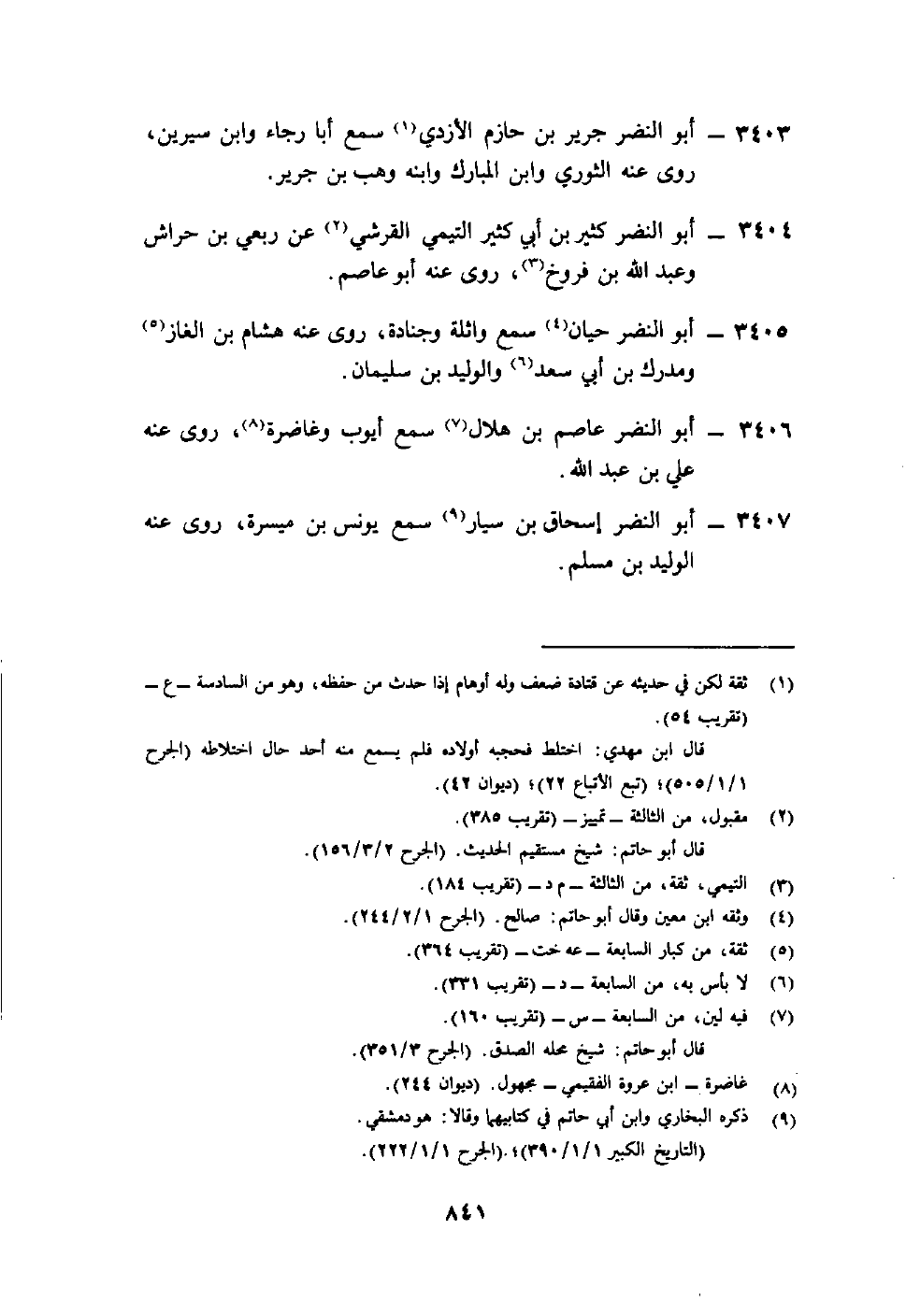 3406- أبو النضر عاصم بن هلال7 سمع أيوب وغاضرة8، روى عنه علي بن عبد الله.