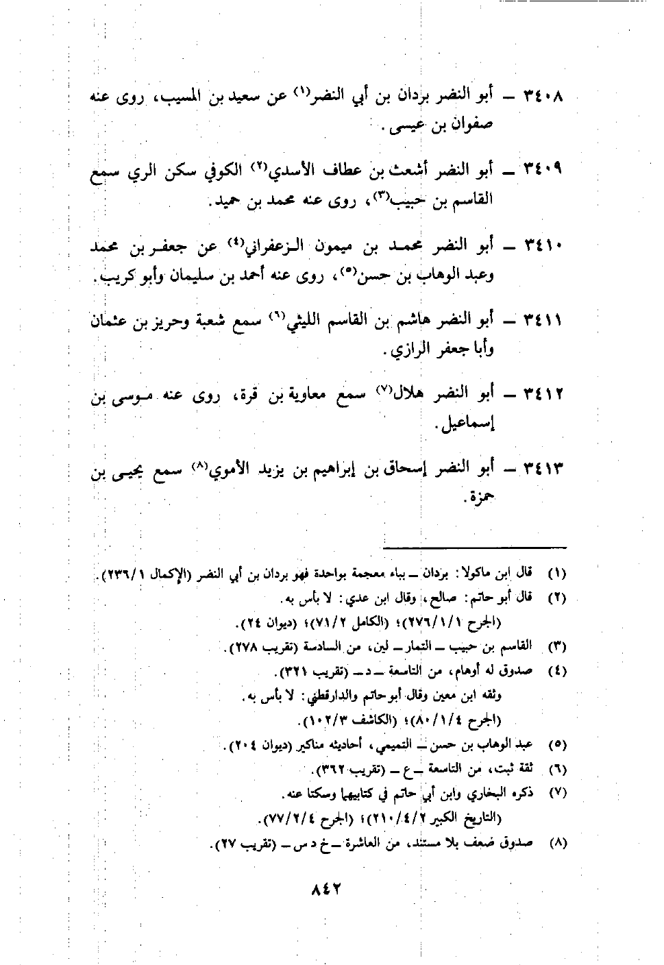 3411- أبو النضر هاشم بن القاسم الليثي6 سمع شعبة وحريز بن عثمان وأبا جعفر الرازي.