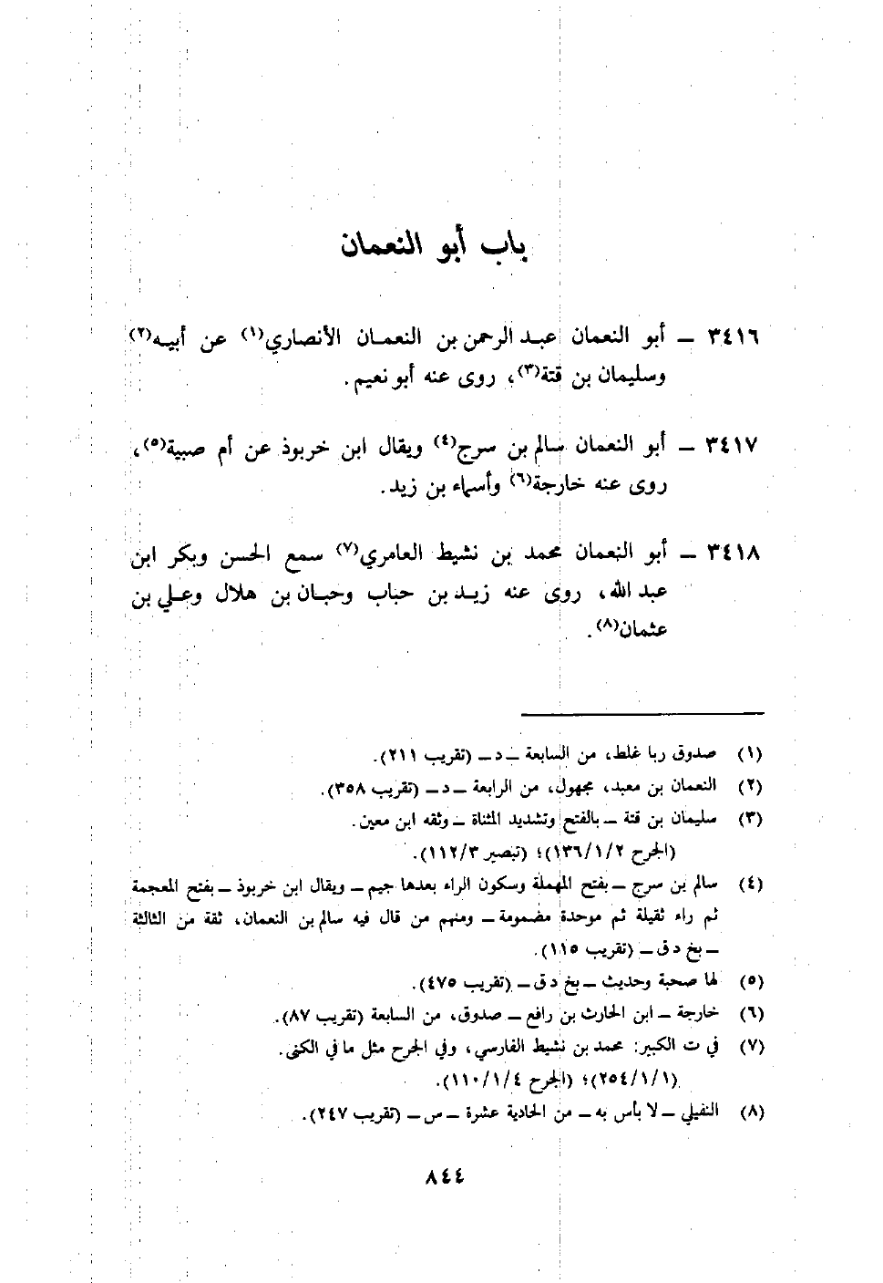 3418- أبو النعمان محمد بن نشيط العامري7 سمع الحسن وبكر بن عبد الله، روى عنه زيد بن حباب وحبان بن هلال وعلي بن عثمان8.