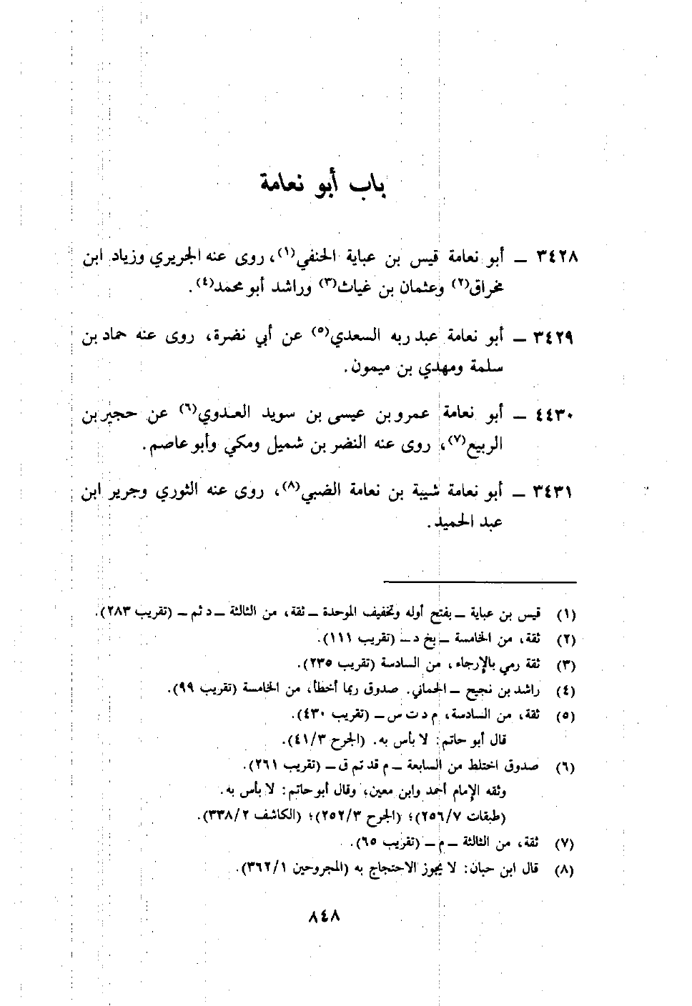 3431- أبو نعامة شيبة بن نعامة الضبي8، روى عنه الثوري وجرير ابن عبد الحميد