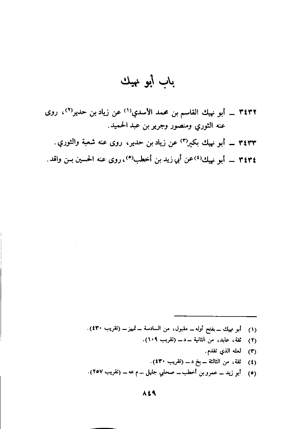 3433- أبو نهيك بكير3 عن زياد بن حدير، روى عنه شعبة والثوري.
