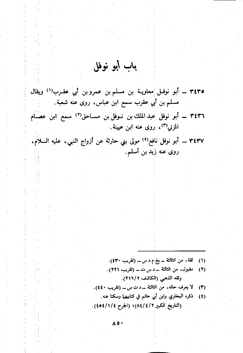 3437- أبو نوفل نافع4 مولى بني حارثة عن أزواج النبي عليه السلام، روى عنه زيد بن أسلم.