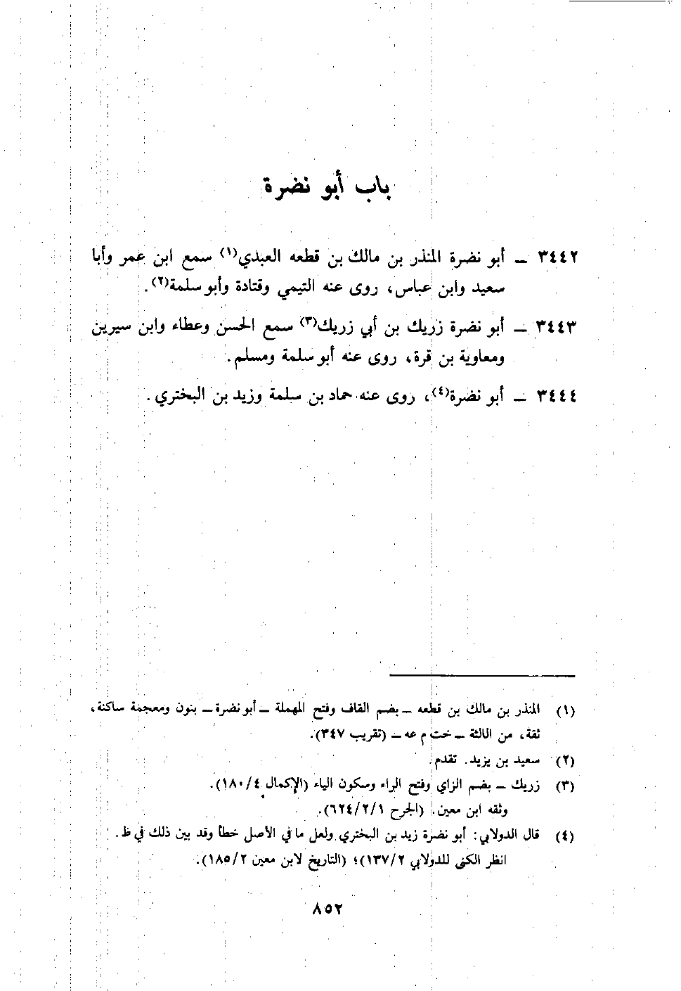 3442- أبو نضرة المنذر بن مالك بن قطعه العبدي1 سمع ابن عمر وأبا سعيد وابن عباس، روى عنه التيمي وقتادة وأبو سلمة2.