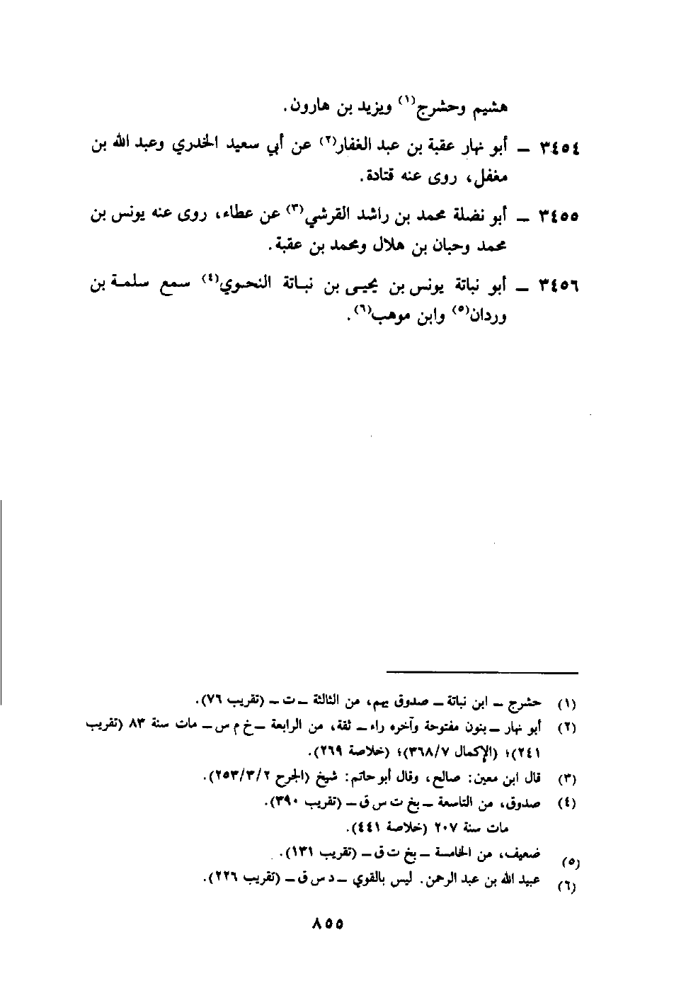 3455- أبو نضلة محمد بن راشد القرشي3 عن عطاء، روى عنه يونس بن محمد وحبان بن بن هلال ومحمد بن عقبة.