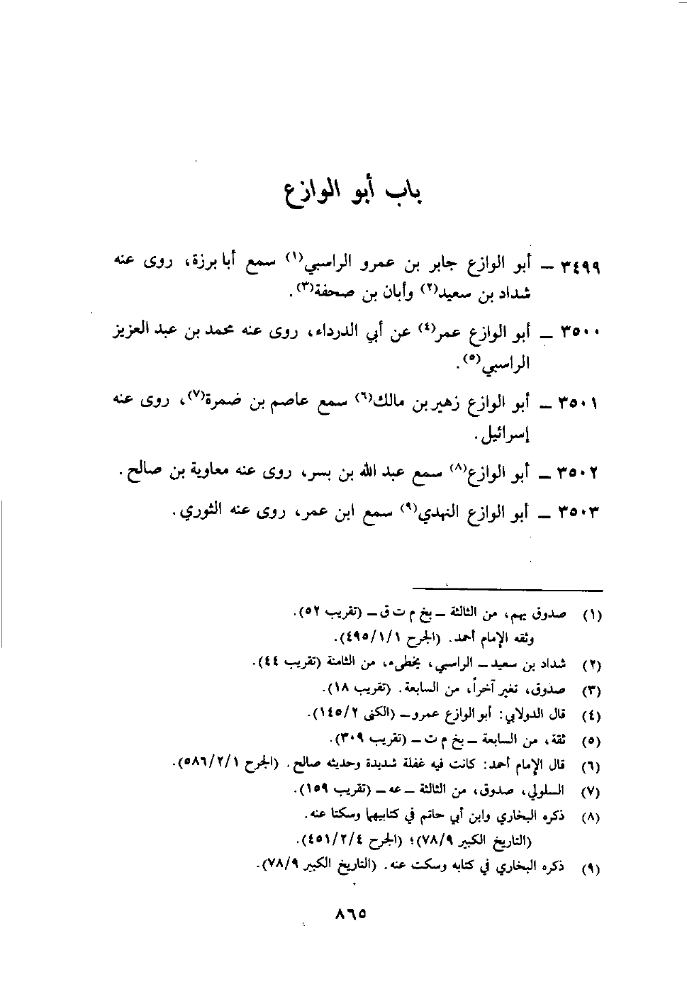 3501- أبو الوازع زهير بن مالك6 سمع عاصم بن ضمرة7، روى عنه إسرائيل.