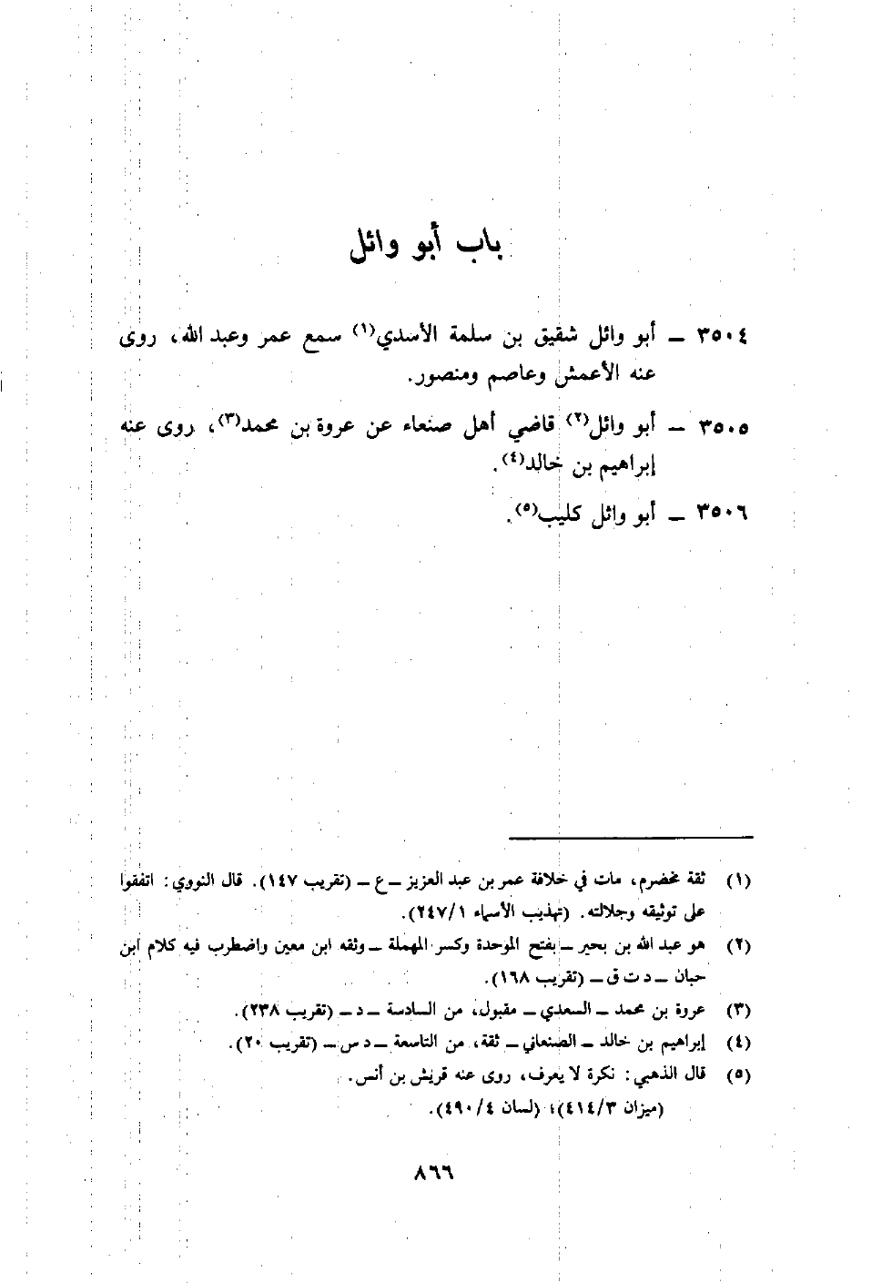 3504- أبو وائل شقيق بن سلمة الأسدي1 سمع عمر وعبد الله، روى عنه الأعمش وعاصم ومنصور.