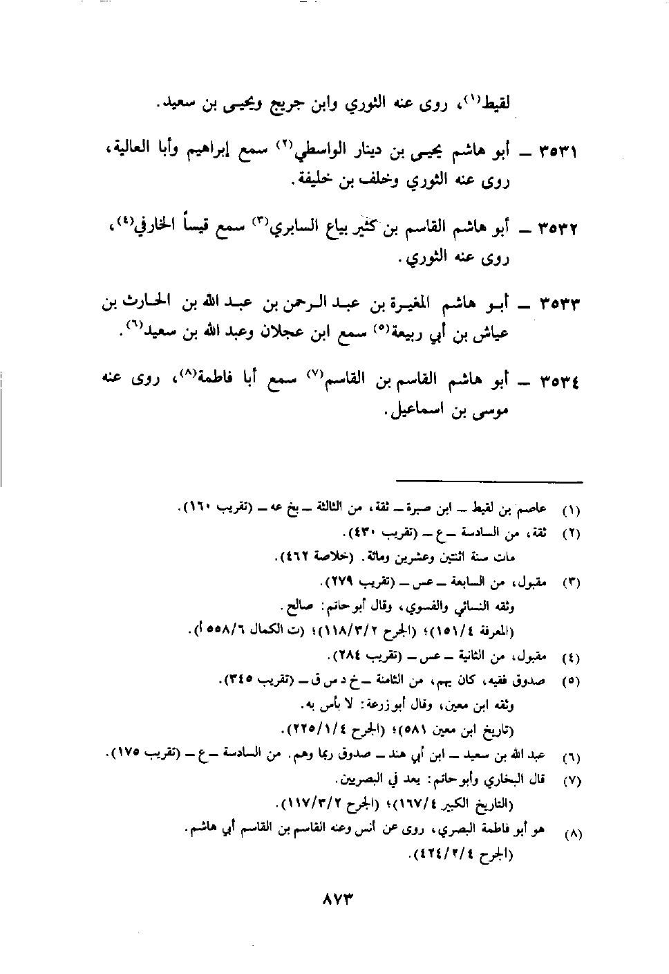 3532- أبو هاشم القاسم بن كثير بياع السابري3 سمع قيسا الخارفي4، روى عنه الثوري.
