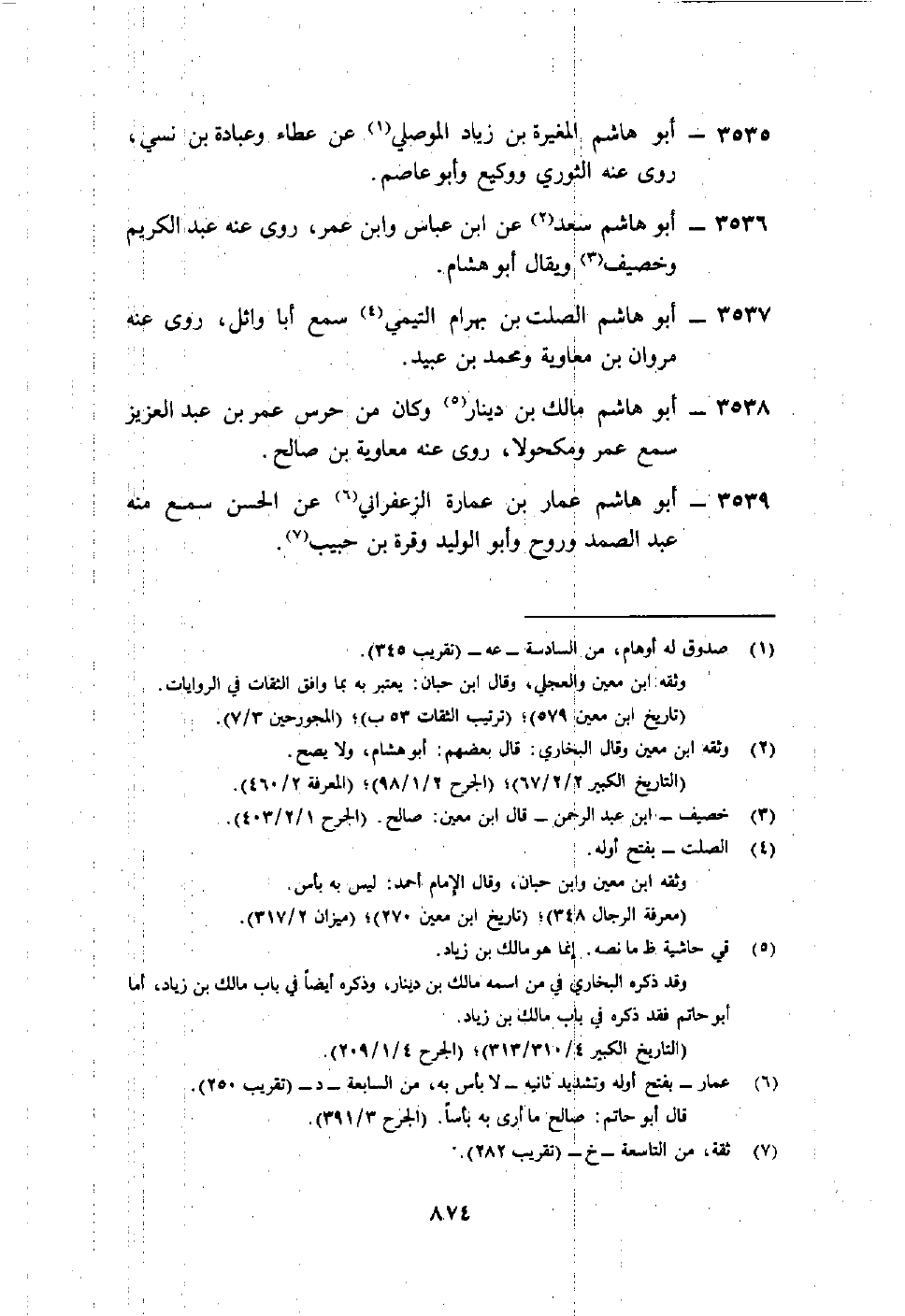 3538- أبو هاشم مالك بن دينار5 وكان من حرس عمر بن عبد العزيز سمع عمر ومكحولا، روى عنه معاوية بن صالح.