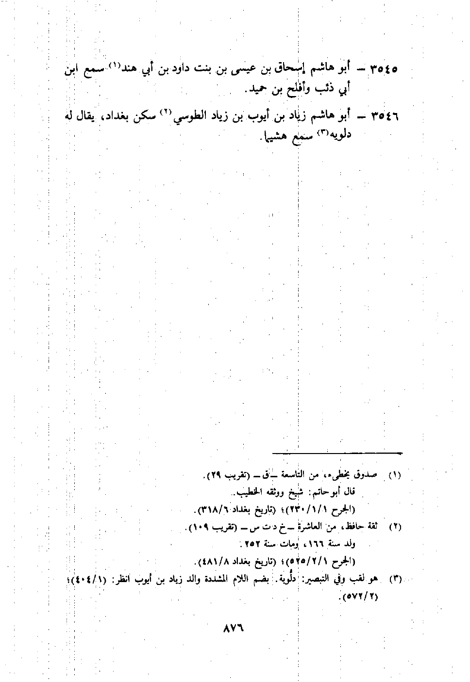 3546- أبو هاشم زياد بن أيوب بن زياد الطوسي2 سكن بغداد يقال له دلويه3 سمع هشيما.