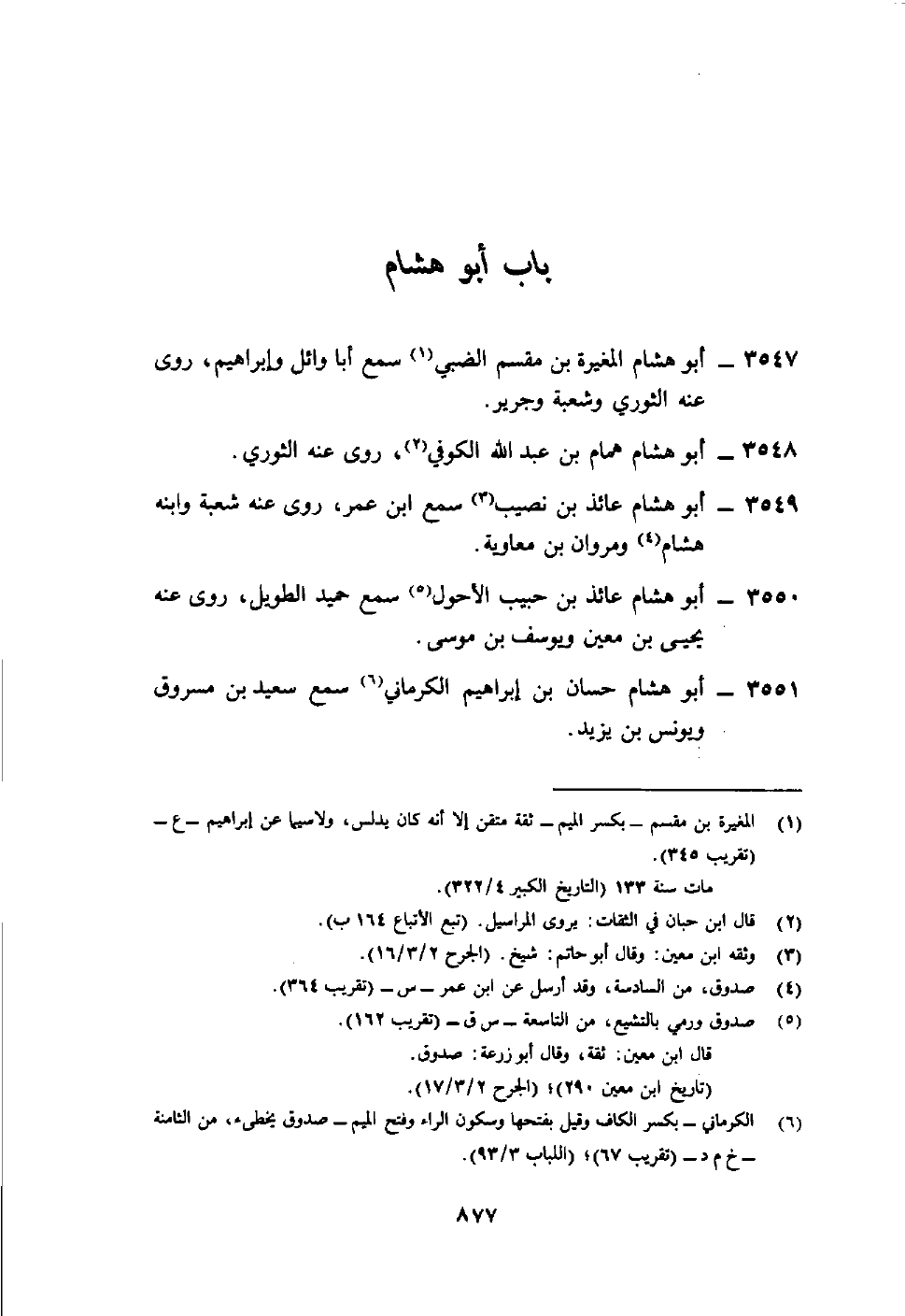 3547- أبو هشام المغيرة بن مقسم الضبي1 سمع أبا وائل وإبراهيم، روى عنه الثوري وشعبة وجرير.