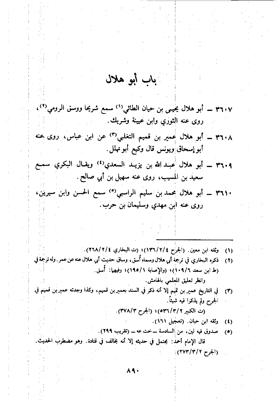 3608- أبو هلال عمير بن قميم التغلبي3 عن ابن عباس، روى عنه أبو إسحاق ويونس قال وكيع أبو تهلل.