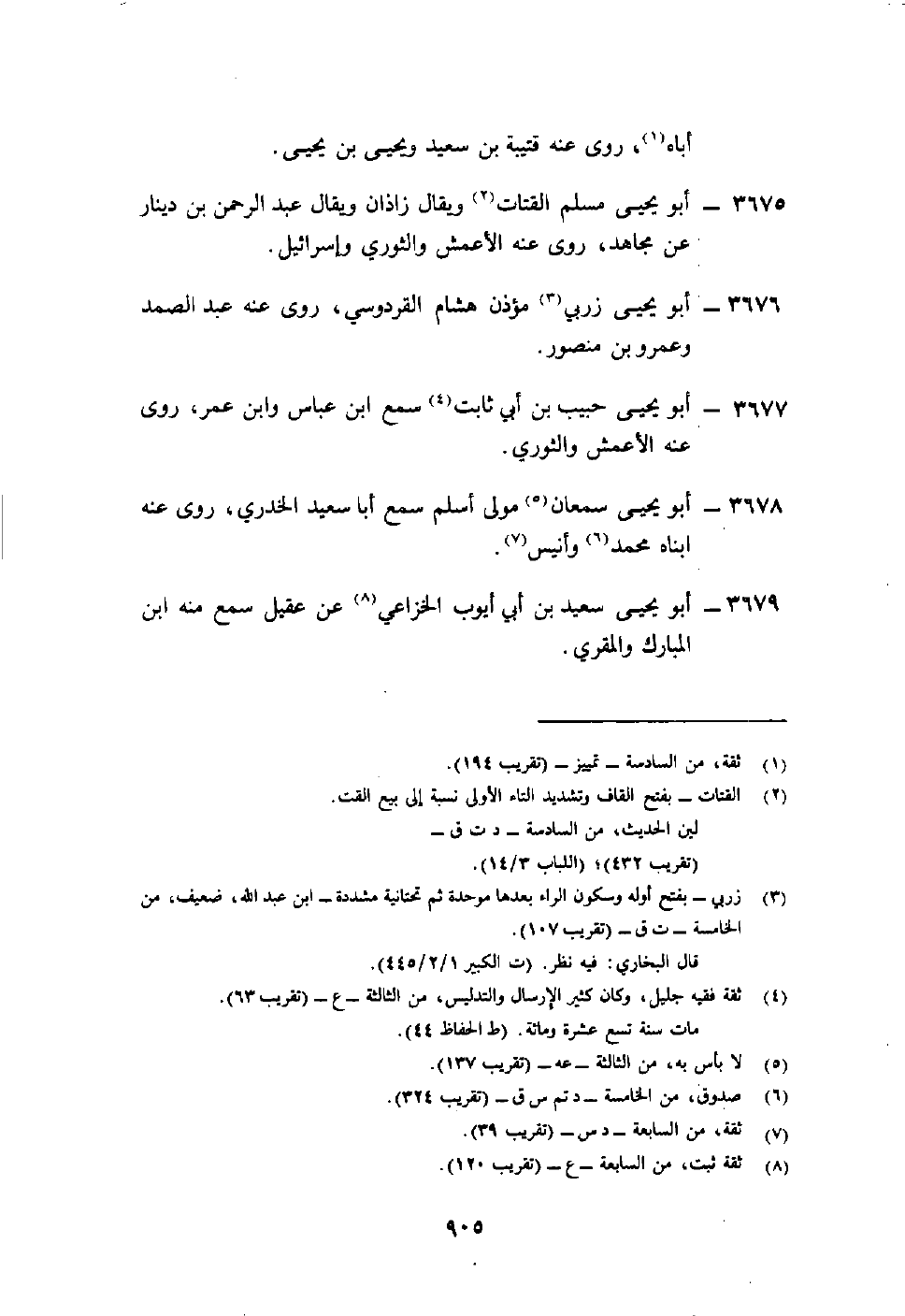 3675- أبو يحيى مسلم القتات2 ويقال زاذان ويقال عبد الرحمن بن دينار عن مجاهد، روى عنه الأعمش والثوري وإسرائيل.