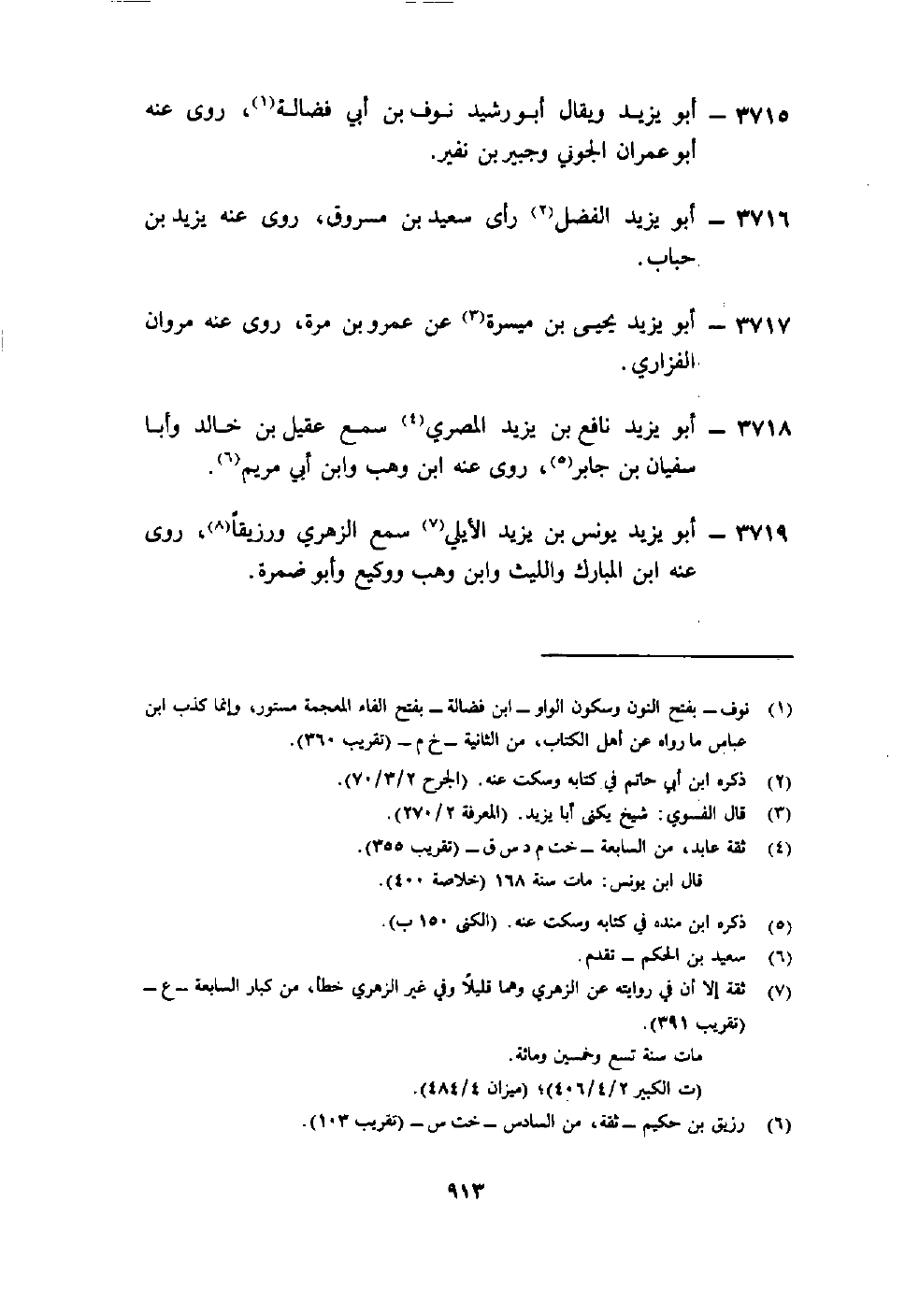 3719- أبو يزيد يونس بن يزيد الأيلي7 سمع الزهري ورزيقا8، روى عنه ابن المبارك والليث وابن وهب ووكيع وأبو ضمرة.