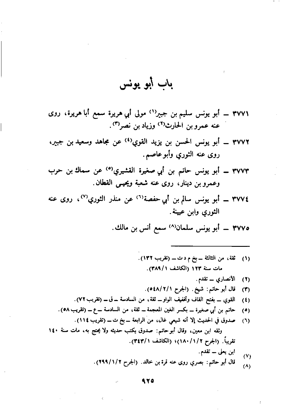 3774- أبو يونس سالم بن أبي حفصة6 عن منذر الثوري7، روى عنه الثوري وابن عيينة.