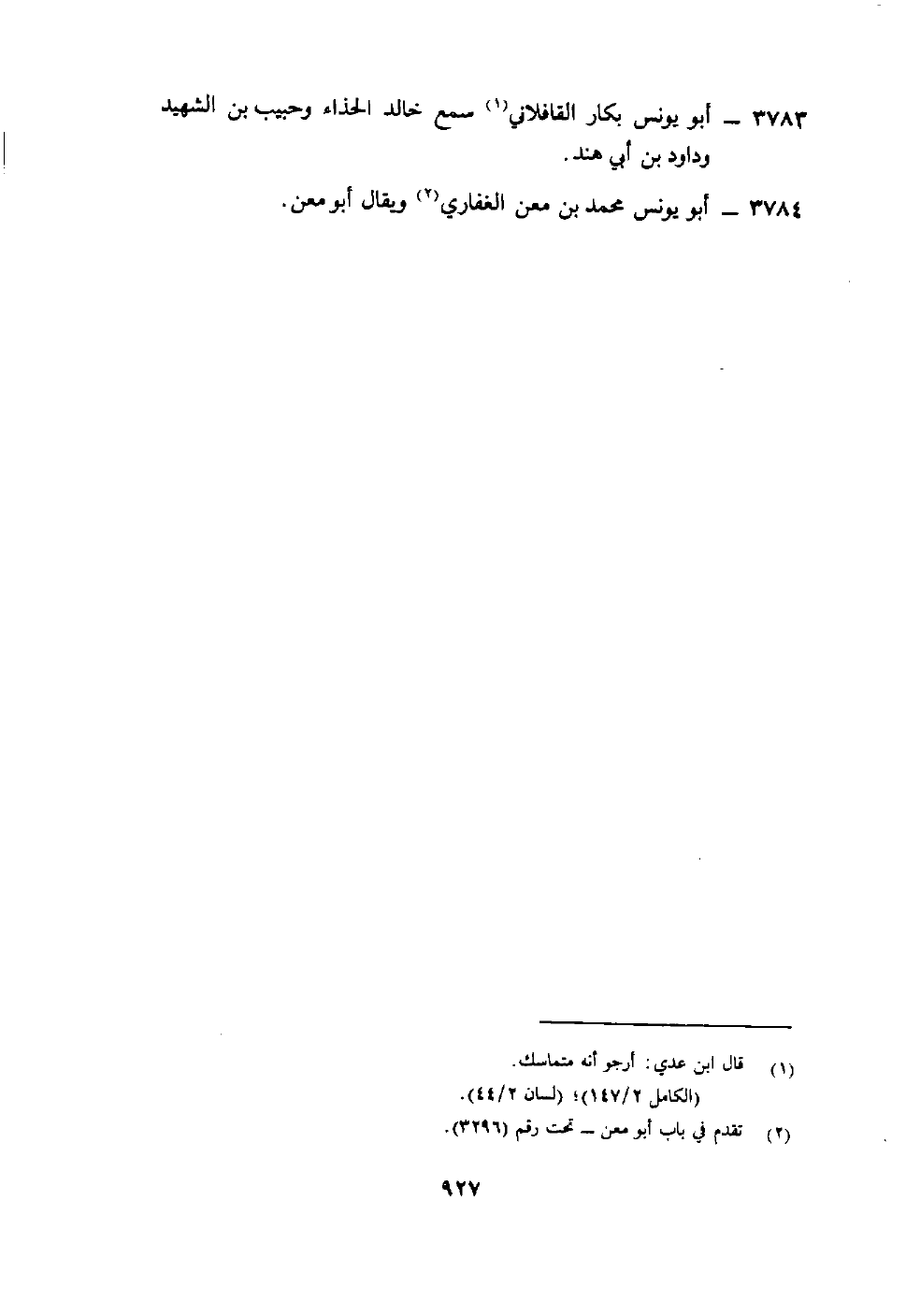 3783- أبو يونس بكار القافلاني1 سمع خالد الحذاء وحبيب بن الشهيد وداود بن أبي هند.