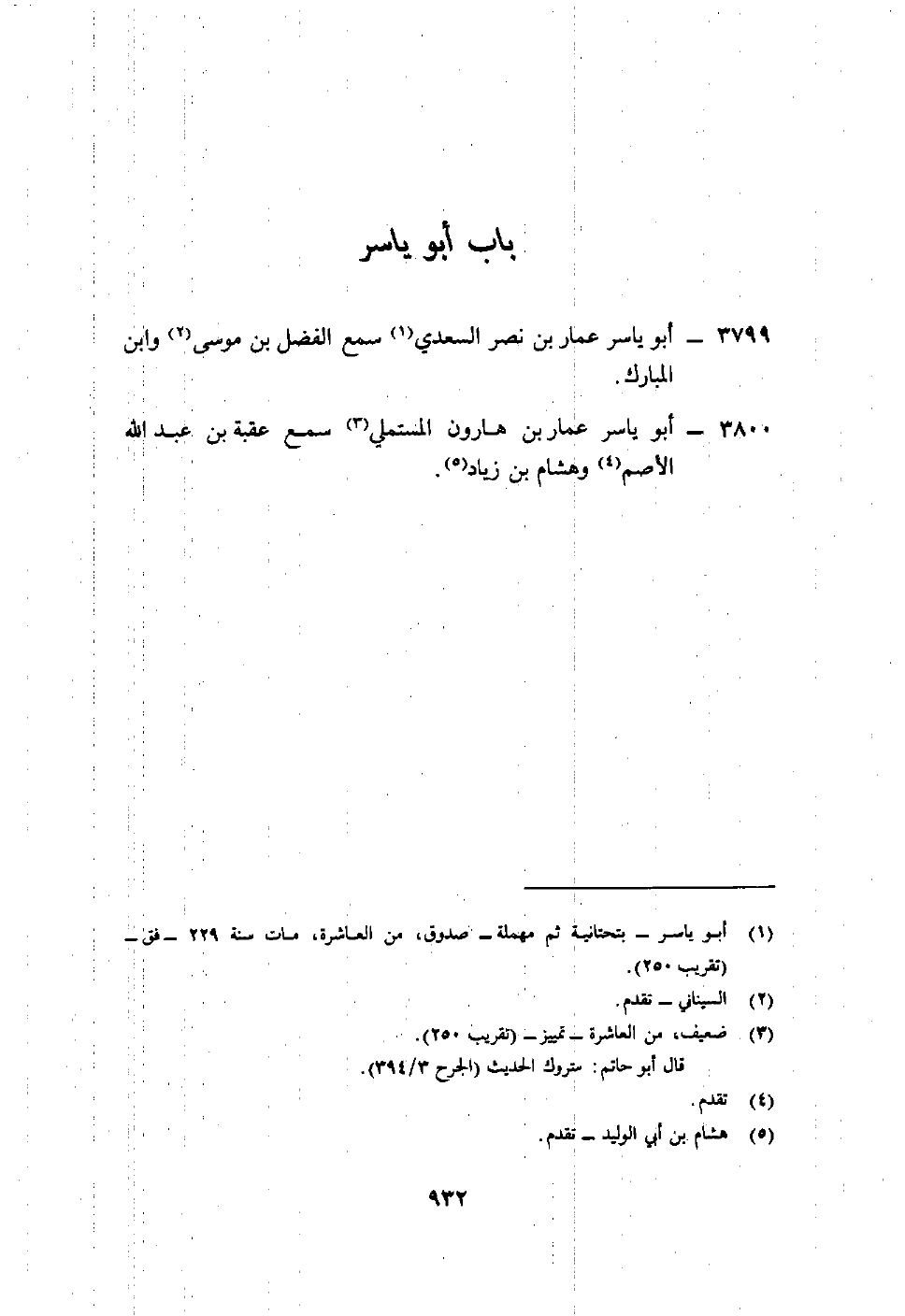 3800- أبو ياسر عمار بن هارون المستملي3 سمع عقبة بن عبد الله الأصم4 وهشام بن زياد5.