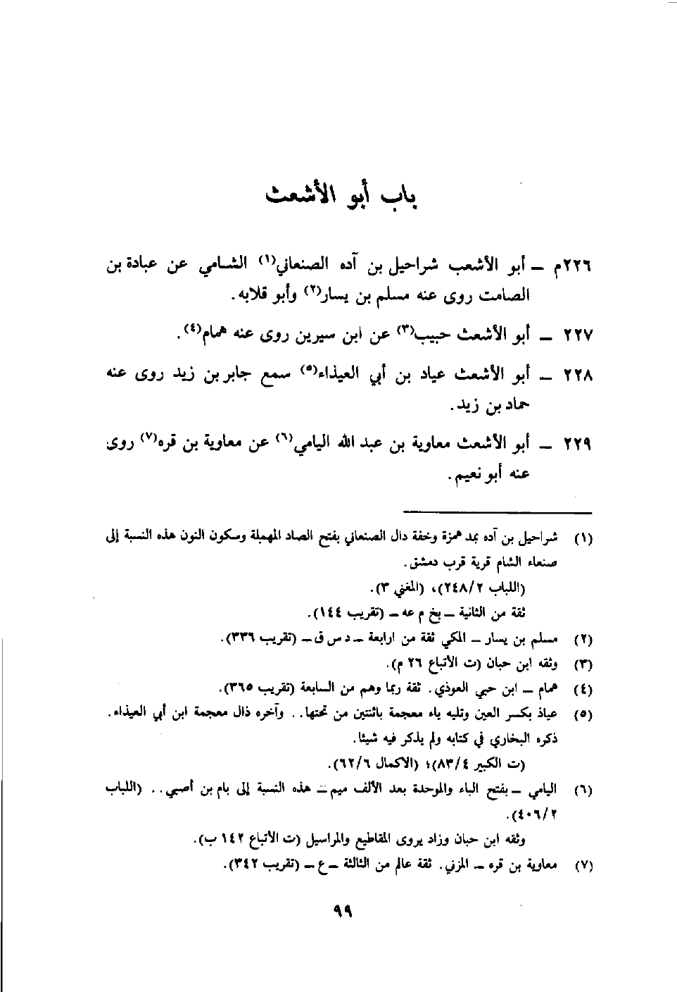 226م- أبو الأشعث شراحيل بن آده الصنعاني1 الشامي عن عبادة بن الصامت روى عنه مسلم بن يسار2 وأبو قلابه.