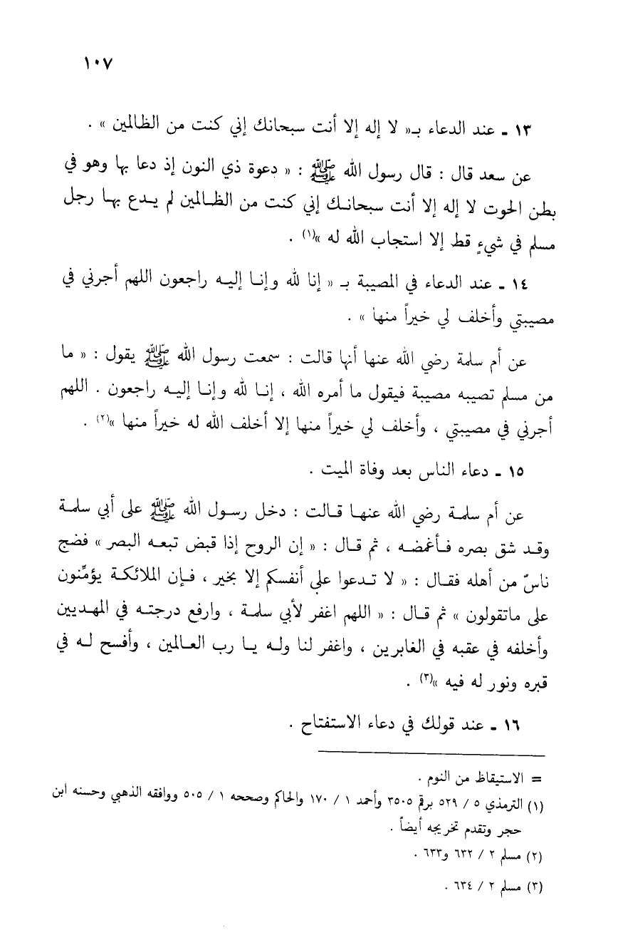 14 - عند الدعاء في المصيبة بـ "إنا لله وإنا إليه راجعون اللهم أجرني في مصيبتي وأخلف لي خيراً منها".