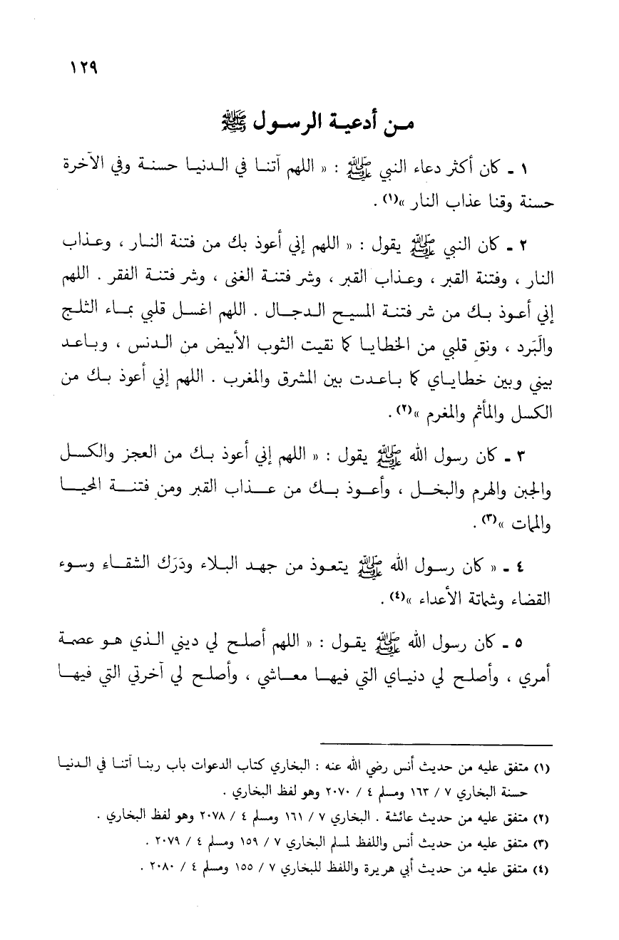 (¬1) متفق عليه من حديث أنس رضي الله عنه: البخاري كتاب الدعوات باب ربنا آتنا في الدنيا حسنة البخاري 7/ 163 ومسلم 4/ 2070 وهو لفظ البخاري.
