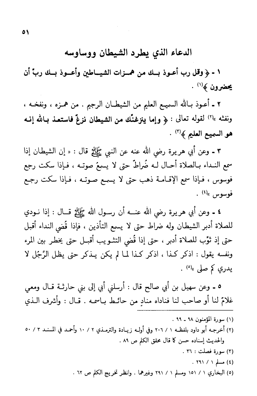 1 - {وَقُلْ رَبِّ أَعُوذُ بِكَ مِنْ هَمَزَاتِ الشَّيَاطِينِ (97) وَأَعُوذُ بِكَ رَبِّ أَنْ يَحْضُرُونِ (98)} (¬1).