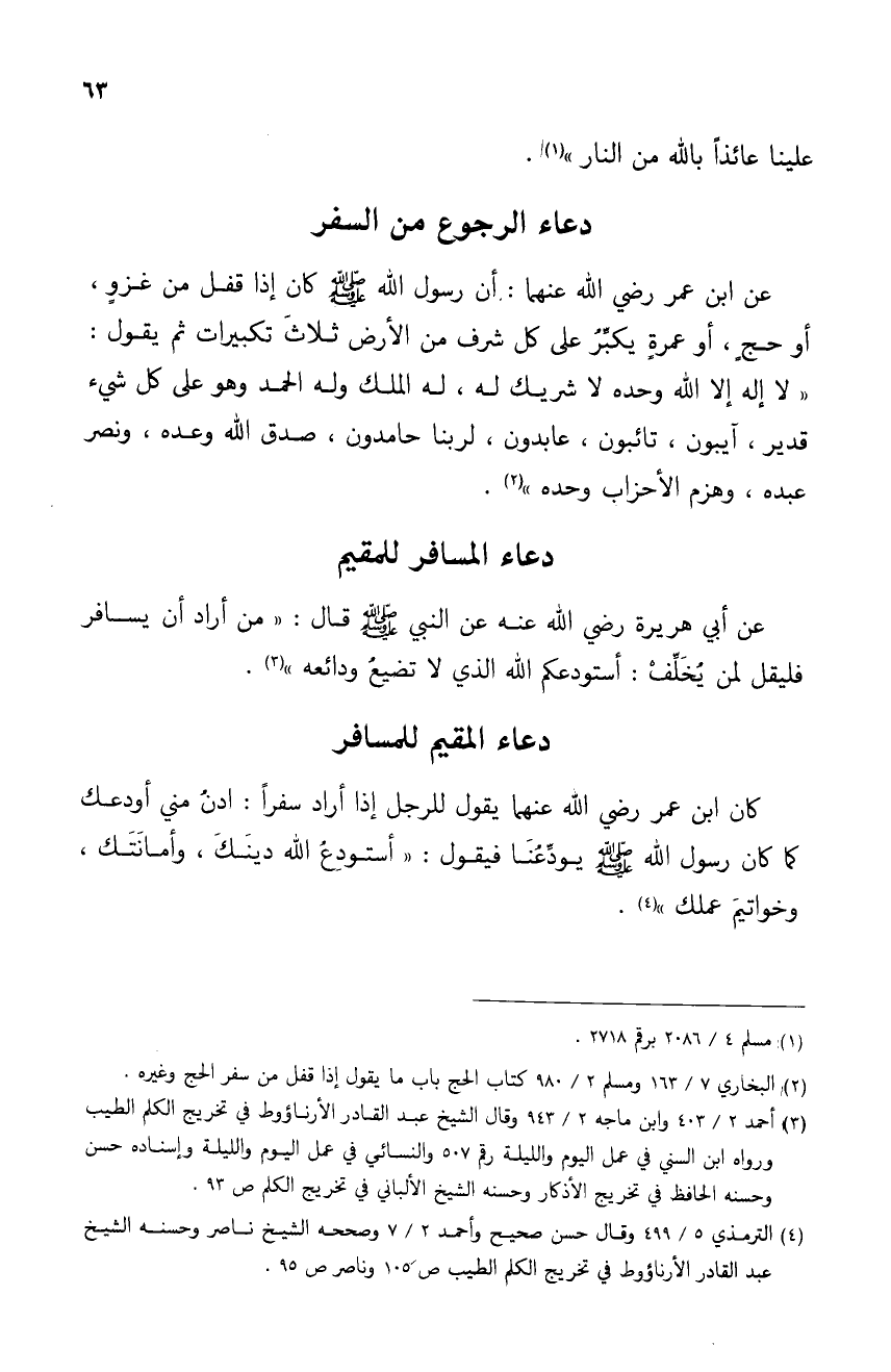 (¬4) الترمذي 5/ 499 وقال حسن صحيح وأحمد 2/ 7 وصححه الشيخ ناصر وحسنه الشيخ عبد القادر الأرناؤوط في تخريج الكلم الطيب ص 105 وناصر ص 95.
