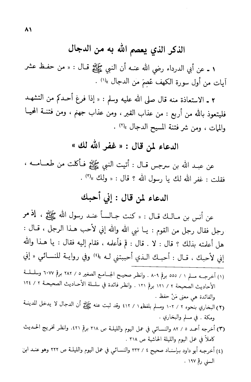 كتاب الذكر والدعاء والعلاج بالرقي من الكتاب والسنة
