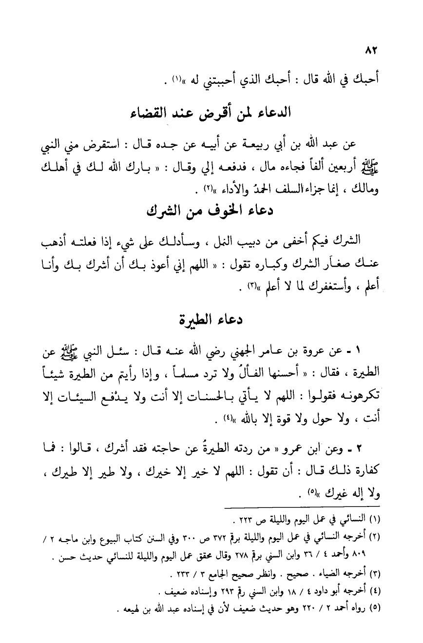 (¬2) أخرجه النسائي في عمل اليوم والليلة برقم 372 ص 300 وفي السنن كتاب البيوع وابن ماجه 2/ 809 وأحمد 4/ 36 وابن السني برقم 278 وقال محقق عمل اليوم والليلة للنسائي حديث حسن.