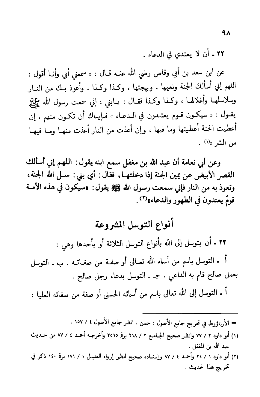 23 - أن يتوسل إلى الله بأنواع التوسل الثلاثة أو بأحدها وهي: