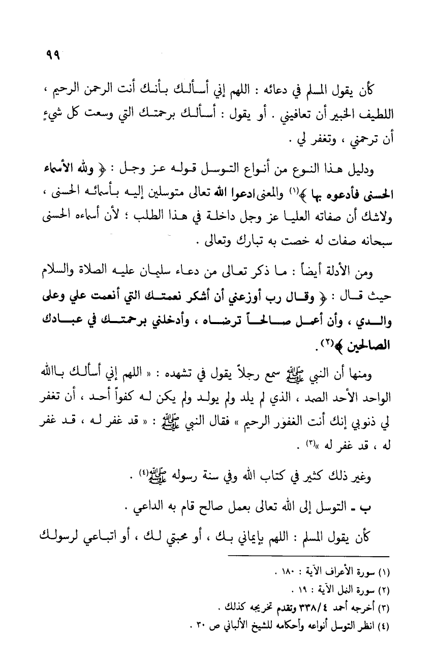 (¬4) انظر التوسل أنواعه وأحكامه للشيخ الألباني ص 30.