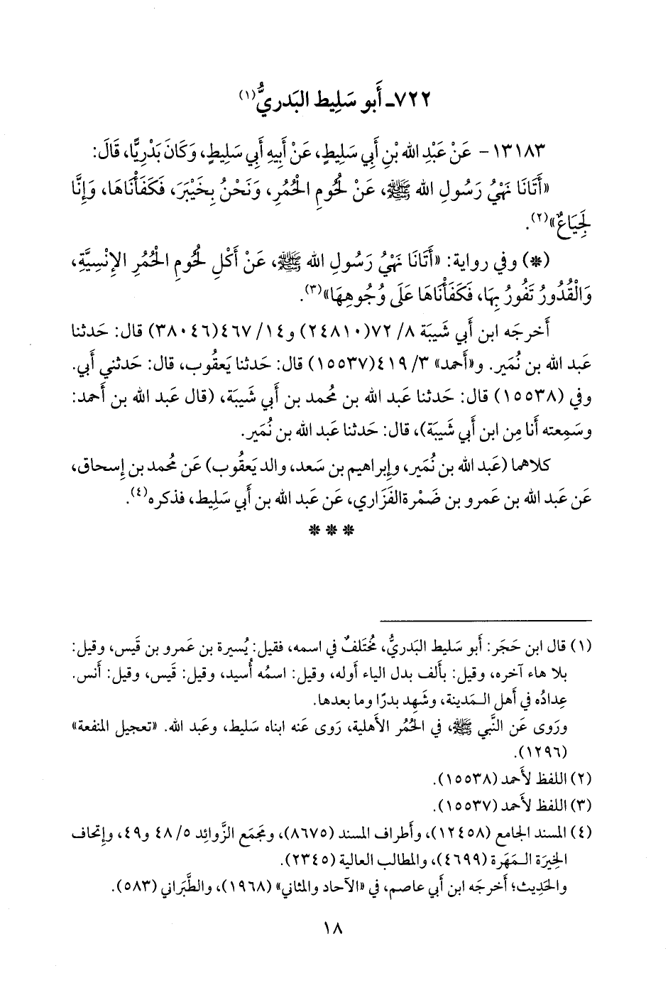 وروى عن النبي صَلى الله عَليه وسَلم في الحمر الأهلية، روى عنه ابناه سليط، وعبد الله. «تعجيل المنفعة» (١٢٩٦). (٢) اللفظ لأحمد (١٥٥٣٨).