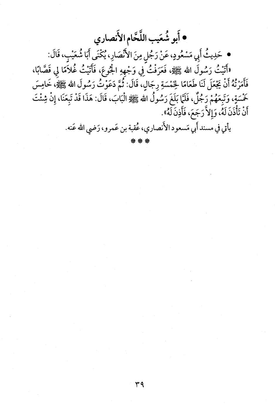 • حديث أبي مسعود، عن رجل من الأنصار، يكنى أبا شعيب، قال: