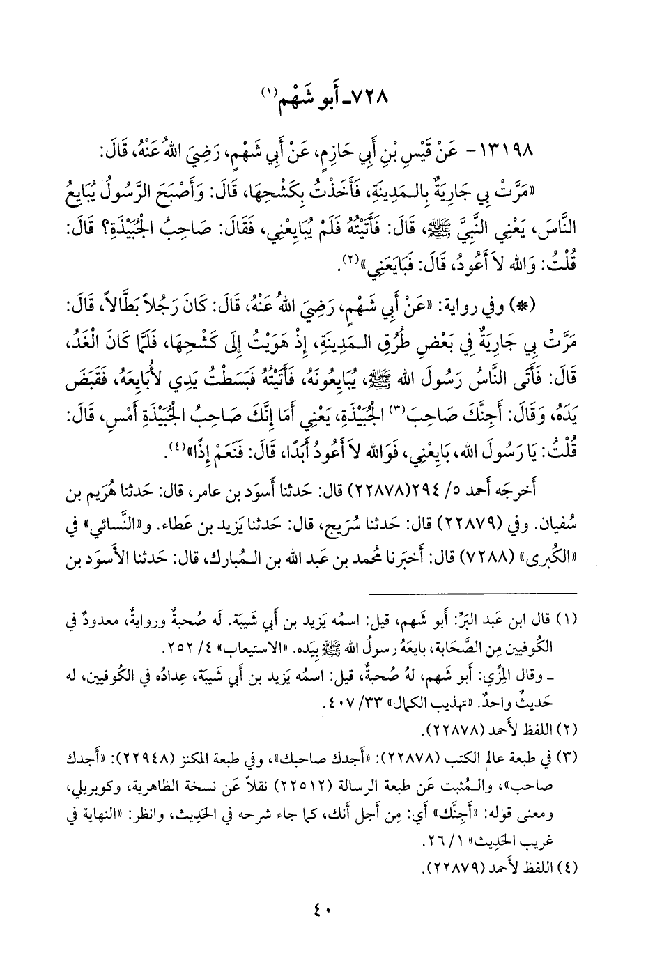 ١٣١٩٨ - عن قيس بن أبي حازم، عن أبي شهم، رضي الله عنه، قال: