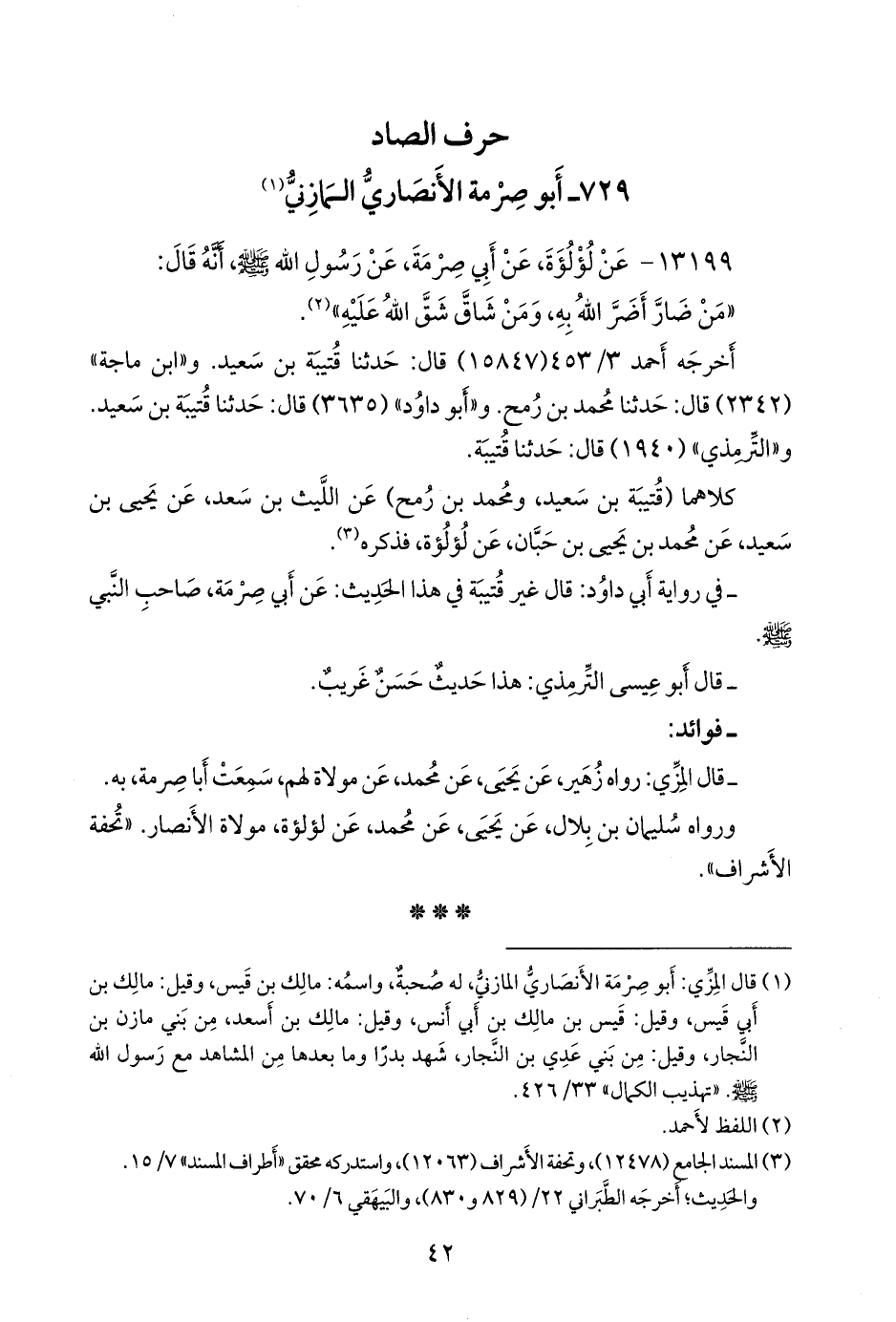 ١٣١٩٩ - عن لؤلؤة، عن أبي صرمة، عن رسول الله صَلى الله عَليه وسَلم أنه قال: