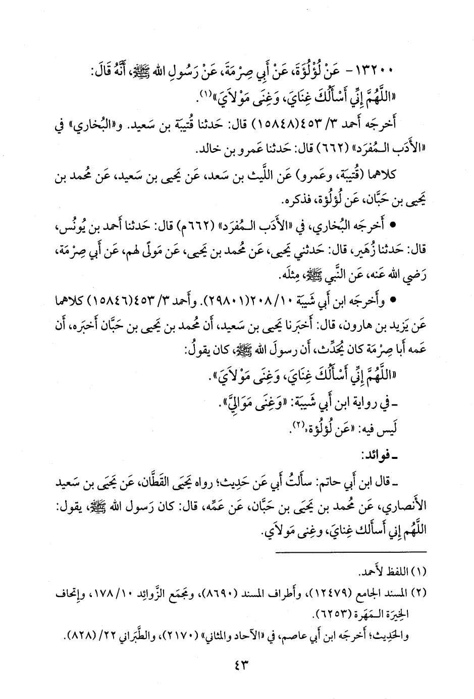 • أخرجه البخاري في «الأدب المفرد» (٦٦٢ م) قال: حدثنا أحمد بن يونس، قال: حدثنا زهير، قال: حدثني يحيى، عن محمد بن يحيى، عن مَولًى لهم، عن أبي صرمة، رضي الله عنه، عن النبي صَلى الله عَليه وسَلم، مِثلَه.